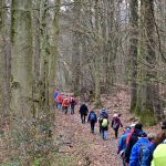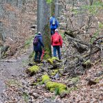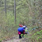 Mit Regenjacken und Schirmen bestens ausgerüstet führte Michael Harmsen die Gruppe vom Jungenberg zur Waldheide und teilweise auf dem Steinsfelderweg zum Römerweg. Der wunderschöne naturnahe Weg hat, seit er das „ Privileg“ eines DAV Mountainbike Trails hat, sehr gelitten. Schon die Römer und später die Kaufleute nutzten diesen Weg auf dem Kamm zwischen Öhringen und Heilbronn.