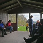 Am Steinhäusle vom Heilbronner Verschönerungsverein trennten sich die Gäste. Monika Breusch führte ihre Gruppe über den Hintersberg in den Heilbronner Stadtwald über den Spielplatz zu den Grillhütten . Nach einem Vesper ging es dann auf direktem Weg nach gut 10 km zum Parkplatz. Michael Harmsen führte seine Gruppe über die Reisbergbrücke zur Hütte im Gewann Steinacker, einer guten Weinlage von Lehrensteinsfeld. Hier ließ sich mit Weitblick auch gut Pause machen.