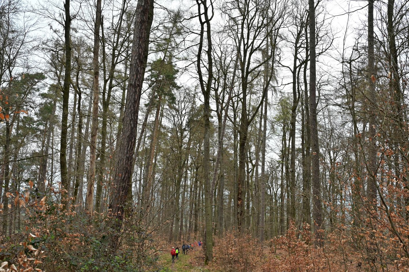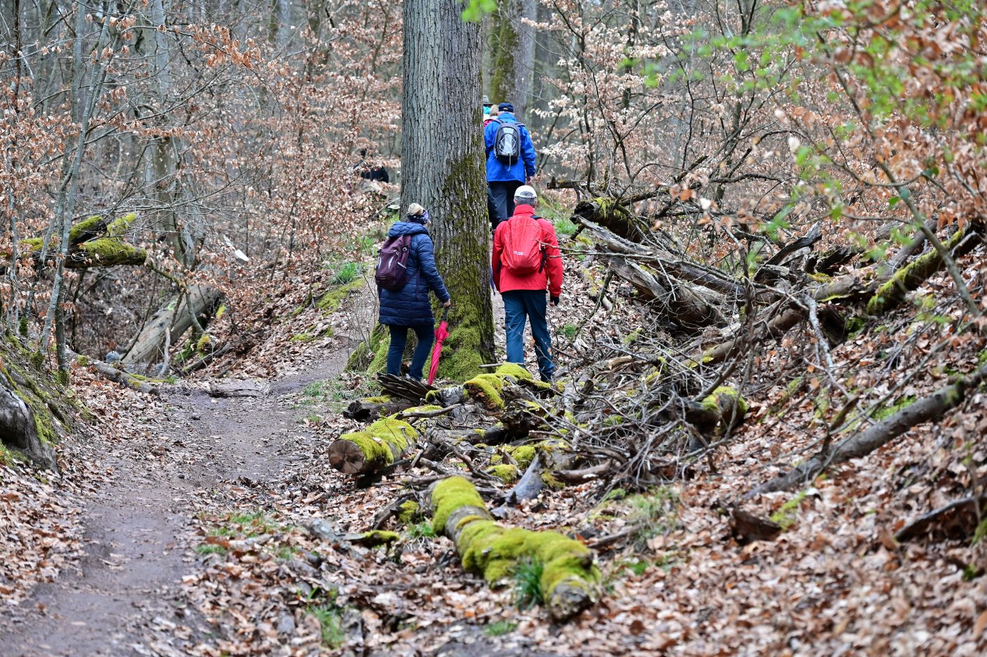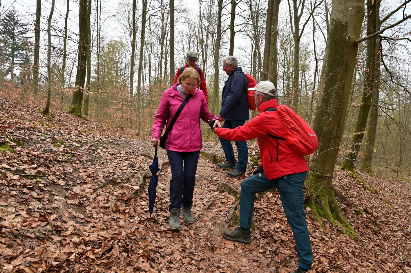 Mit Regenjacken und Schirmen bestens ausgerüstet führte Michael Harmsen die Gruppe vom Jungenberg zur Waldheide und teilweise auf dem Steinsfelderweg zum Römerweg. Der wunderschöne naturnahe Weg hat, seit er das „ Privileg“ eines DAV Mountainbike Trails hat, sehr gelitten. Schon die Römer und später die Kaufleute nutzten diesen Weg auf dem Kamm zwischen Öhringen und Heilbronn.