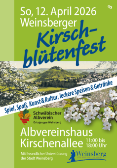 Auch dieses Jahr feiern wir das traditionelle Weinsberger Kirschblütenfest unter der Schirmherrschaft der Stadt Weinsberg.