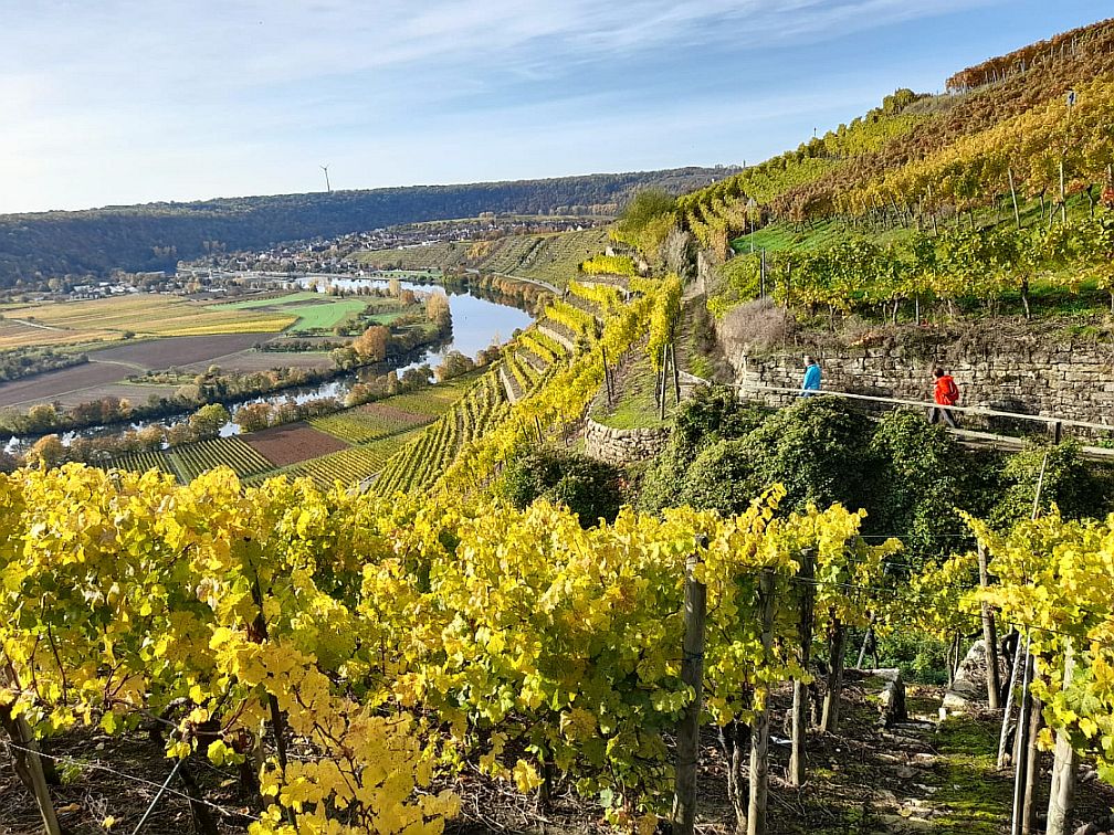 Vom Parkplatz geht es zur Käsbergkanzel mit dem traumhaften Ausblick auf die Neckarschleife und weiter zur den Hessigheimer Felsengärten. Dann über Wiesen und Weiden zum Schloß Liebenstein. Über Ottmarsheim führt der Weg zurück zum Startpunkt