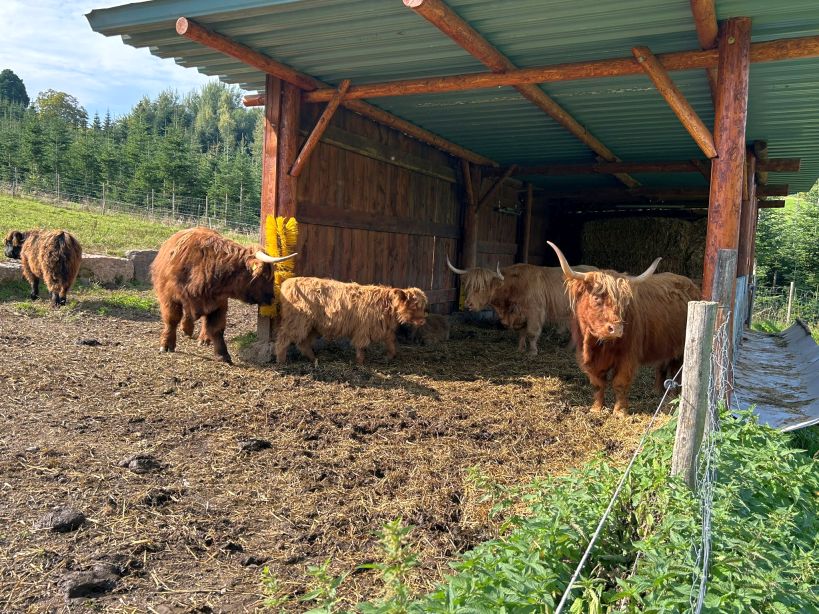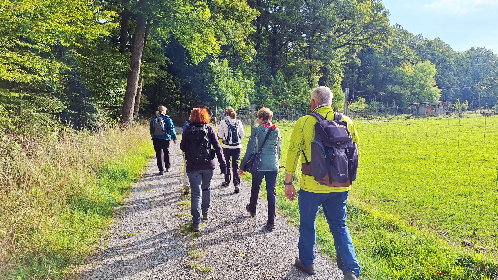 Gestärkt ging es über die kleinen Weiler Fronfalls und Schönhard im großen Bogen, über Wiesen und Felder, wieder in den Wald.