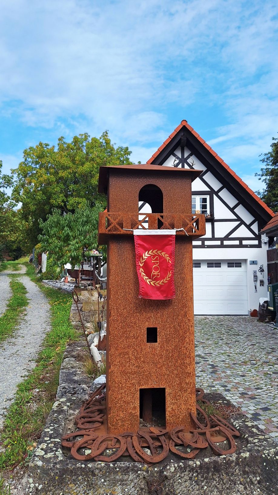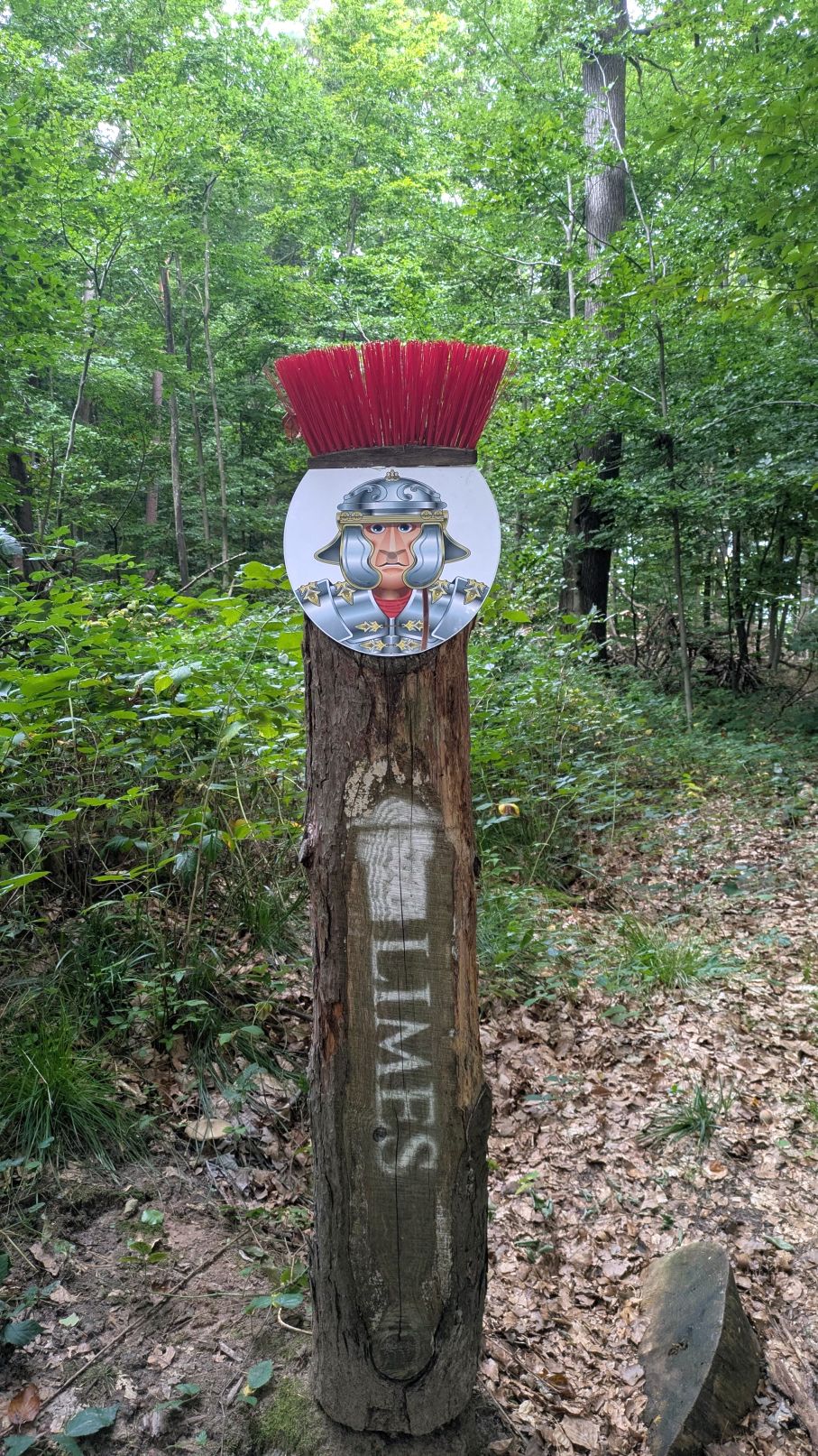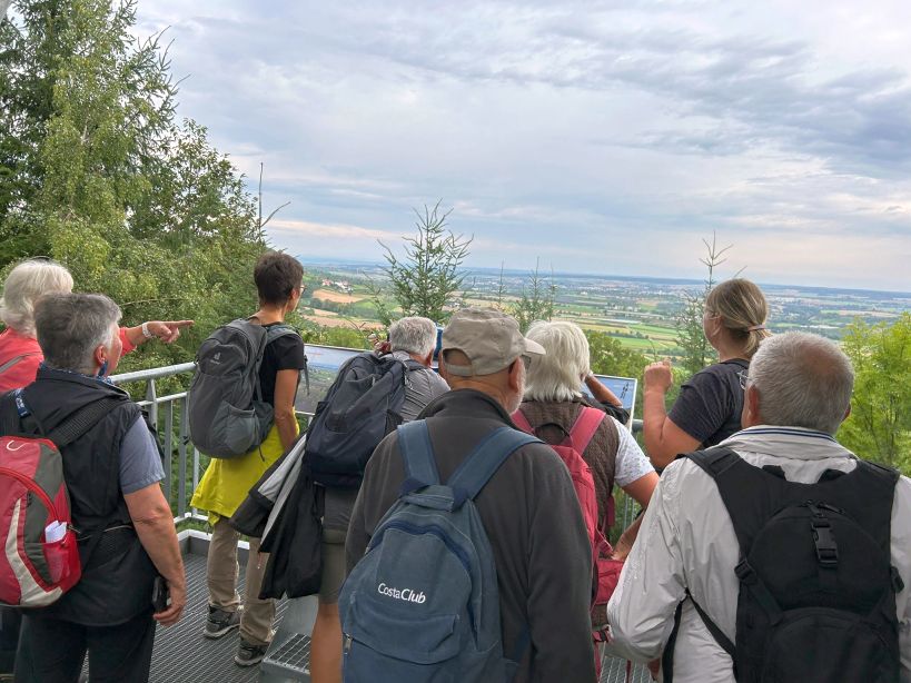 Von der Römerstraße in Gleichen starteten die Gäste auf dem Limesweg zum Sechseckturm, dem Wachturm 9/51, der unweit des Limesblicks liegt. Der Turm diente auch als Messpunkt, für die 80 km gerade Linie des Limes zwischen dem Haghof südlich von Welzheim und Walldürn.