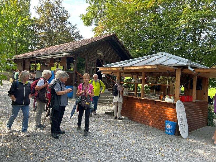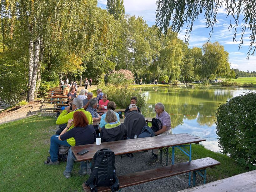 Auf schmalen Waldwegen führte der Weg dann zum Gleichener See, einem idyllischen Naturschutzgebiet auf dem Weg ins Forellenparadies Fronfalls. Tapfer mussten die Gäste sein, lag doch der Duft von Bratwürsten und geräucherten Forellen in der Luft. Für eine Kaffeepause reichte es aber dann doch.