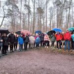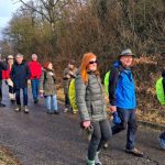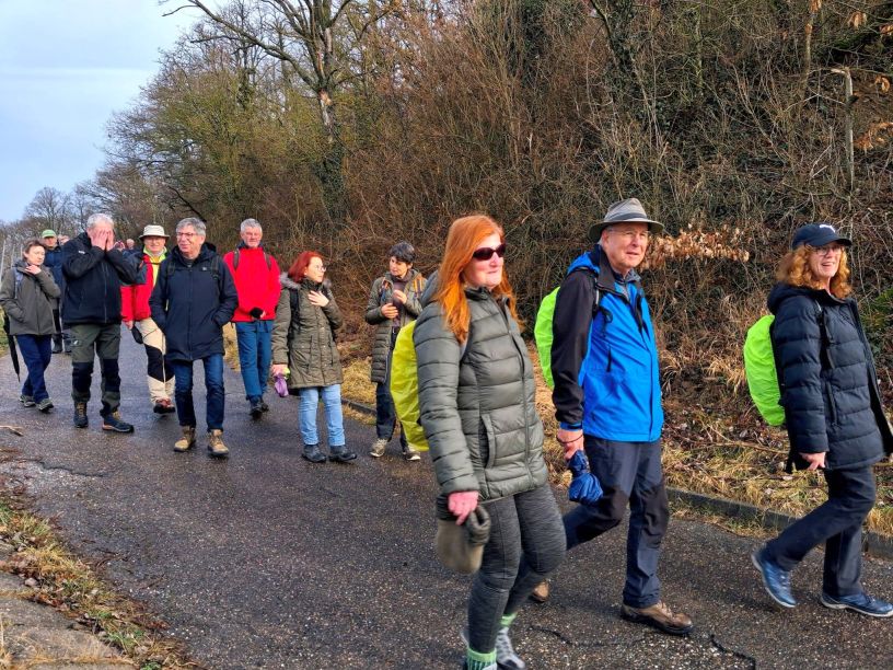 Monika Breusch besuchte die Gedenkstätte auf der Waldheide. Noch standen die Kränze des Gedenkens vom 11. Januar da, und so mancher Gast erinnerte sich an das Ereignis. Weiter ging es zu den Grillhütten für ein trockenes Vesperplätzchen. Auf dem weiteren Weg zeigte sich doch tatsächlich die Sonne und ein kleines Stück blauer Himmel. Über den Waldheideweg und Galgenberg ging es bis zur Aussichtshütte. Hier begann dann der Rückweg über den Paradiesweg zum Parkplatz.