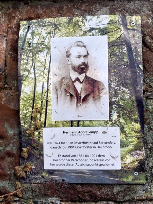 Uwe Bierschenk und Monika Breusch führten die Gruppe über den Triebsteinweg bis zur Galgenbergkreuzung gemeinsam. Der Weg markiert die Grenze eines historischen Weiderechtes zwischen der Stadt Heilbronn und der Stadt Weinsberg, das bis 1874 galt.