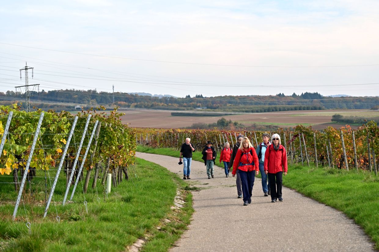 Trotz großer Konkurrenz aus Weinsberg, dort fand die Weinwanderung rund um die Weibertreu statt, trafen sich 30 wanderbegeisterte Mitglieder und Freunde des Albvereins Weinsberg, um zusammen zu laufen, zu reden und einfach nur die Natur zu genießen. Ute und Jörg Heine hatten sich eine schöne Rundtour um Ottarsheim ausgedacht und gleich das passende, gute Wetter dazu bestellt.