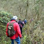 Gewandert wurde natürlich auch. Die schöne, mit einigen Höhenmetern gewürzte Tour führte die 24-köpfige Gruppe über den Paradiesweg zum Advokatenstäffele und auf schmalem, manchmal auch rutschigem Pfad ins Gewann Lindach. Vorbei am Tunneleingang der Bahnlinie Heilbronn – Crailsheim, den viele der auswärtigen Gäste nicht kannten. Der unter Denkmalschutz stehende Tunnel ist 891 m lang, wurde 1862 fertiggestellt und war seinerzeit der längste Eisenbahntunnel Württembergs.