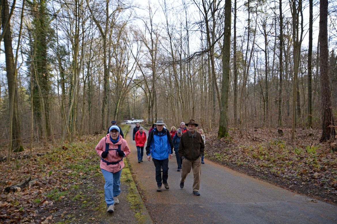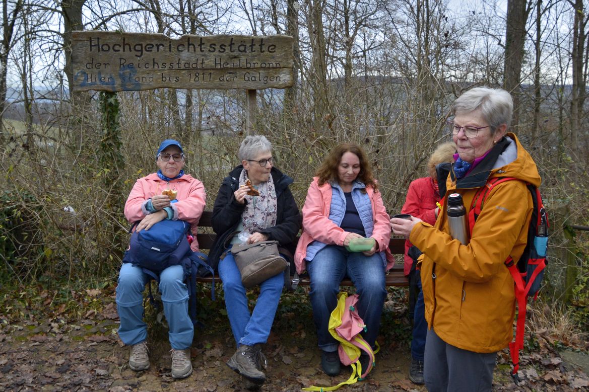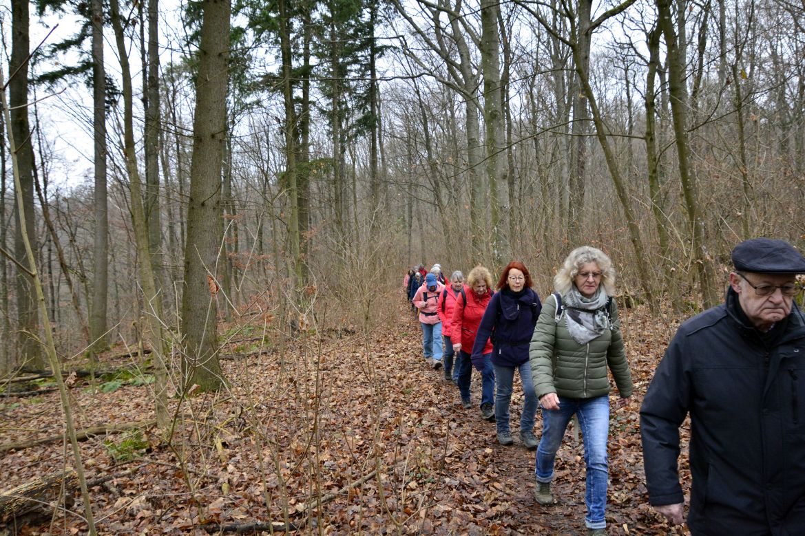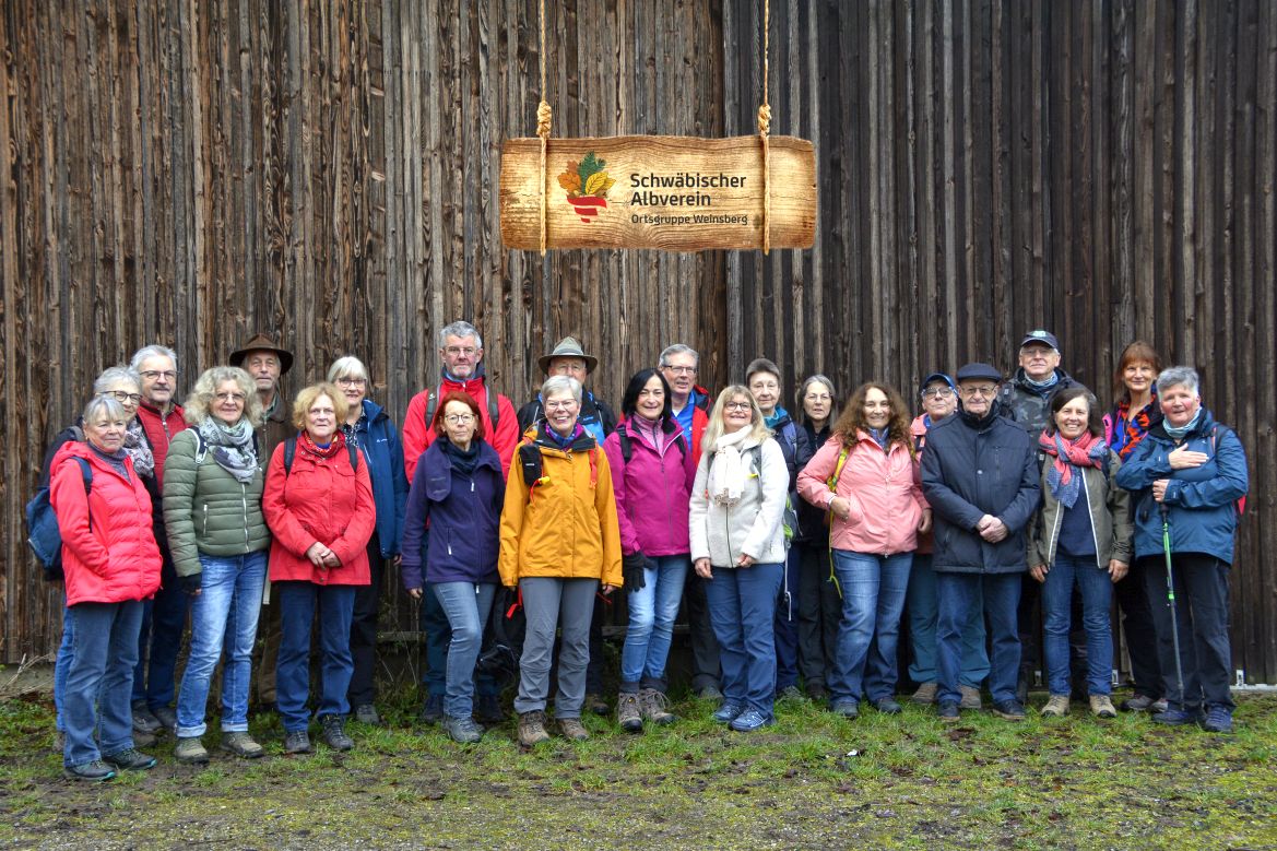 Durch Weinberge und Streuobstwiesen lief die Gruppe hinauf zur Gerichtsstätte, wo eine Vesperpause eingelegt wurde. Auf dem Randweg ging es Richtung Jägerhaus. Oberhalb des Steinbruchs wanderte man dann zurück zur Kirschenallee. Nach ca. 11,5 km und etwa 290 hm erreichte die Gruppe wieder den Parkplatz am Albvereinsheim.
