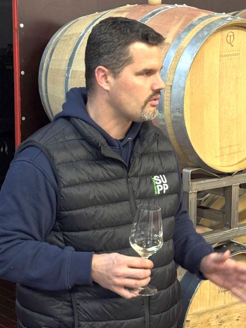 Holzfässern gab Benjamin Supp einen Überblick über das Weingut und seine Lagen.