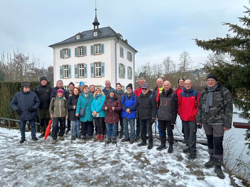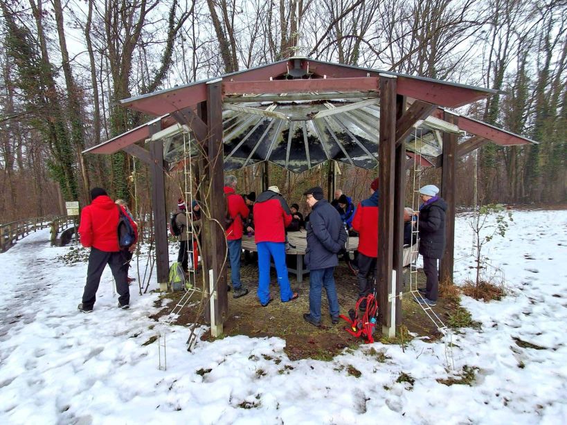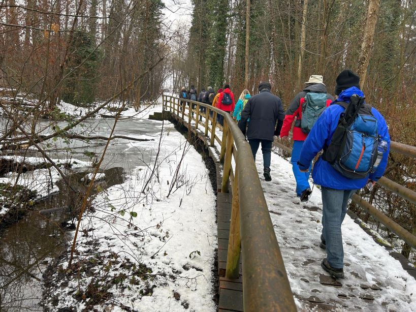 Das davon 14 Männer waren, war schon besonders. Vor dem Hintergrund der vorherrschenden Bodenbedingungen mit Eis und Schnee, kamen die beiden Wanderführer in Abstimmung mit den Teilnehmern überein, dass an diesem Tag nur eine gemeinsame, verkürzte Wanderung durchgeführt wird. Die für diesen Tag geplante lange Wanderung mit ca. 13 km wird auf einen anderen Mittwoch verschoben.