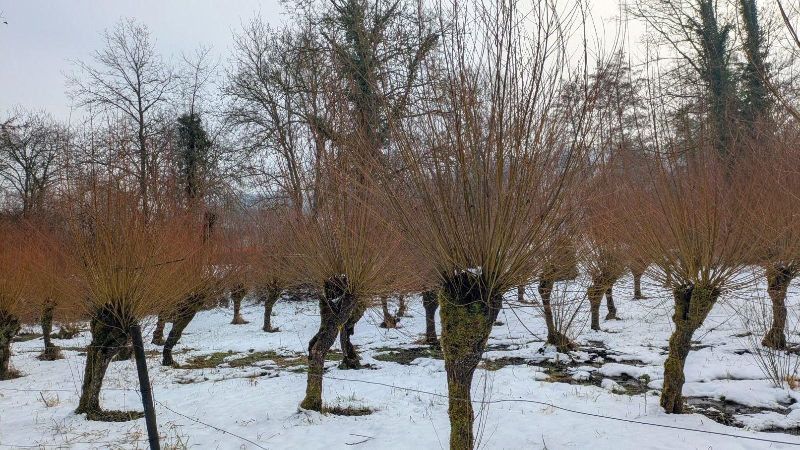 Dann ging es am Licht-Luft-Bad vorbei und wieder zurück zum Trappensee, wo sich die Wandergruppe zum obligatorischen Foto aufstellte. Durch die mit Restschnee bedeckten Weinberge führte der Weg bergauf. Oben angekommen führte Bernd Waldheim seine Wanderer noch einen Schlenker über die Waldheide. Helmut Braun führte die Kurzgruppe direkt zum Wanderheim.